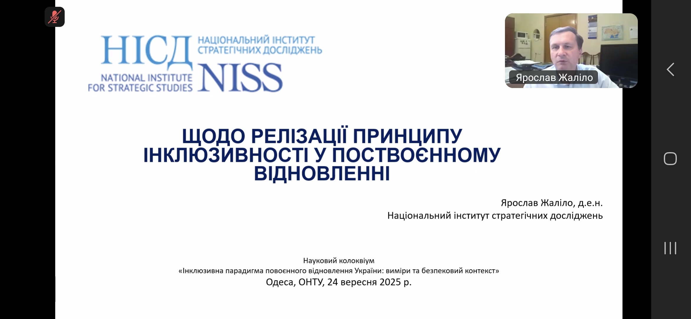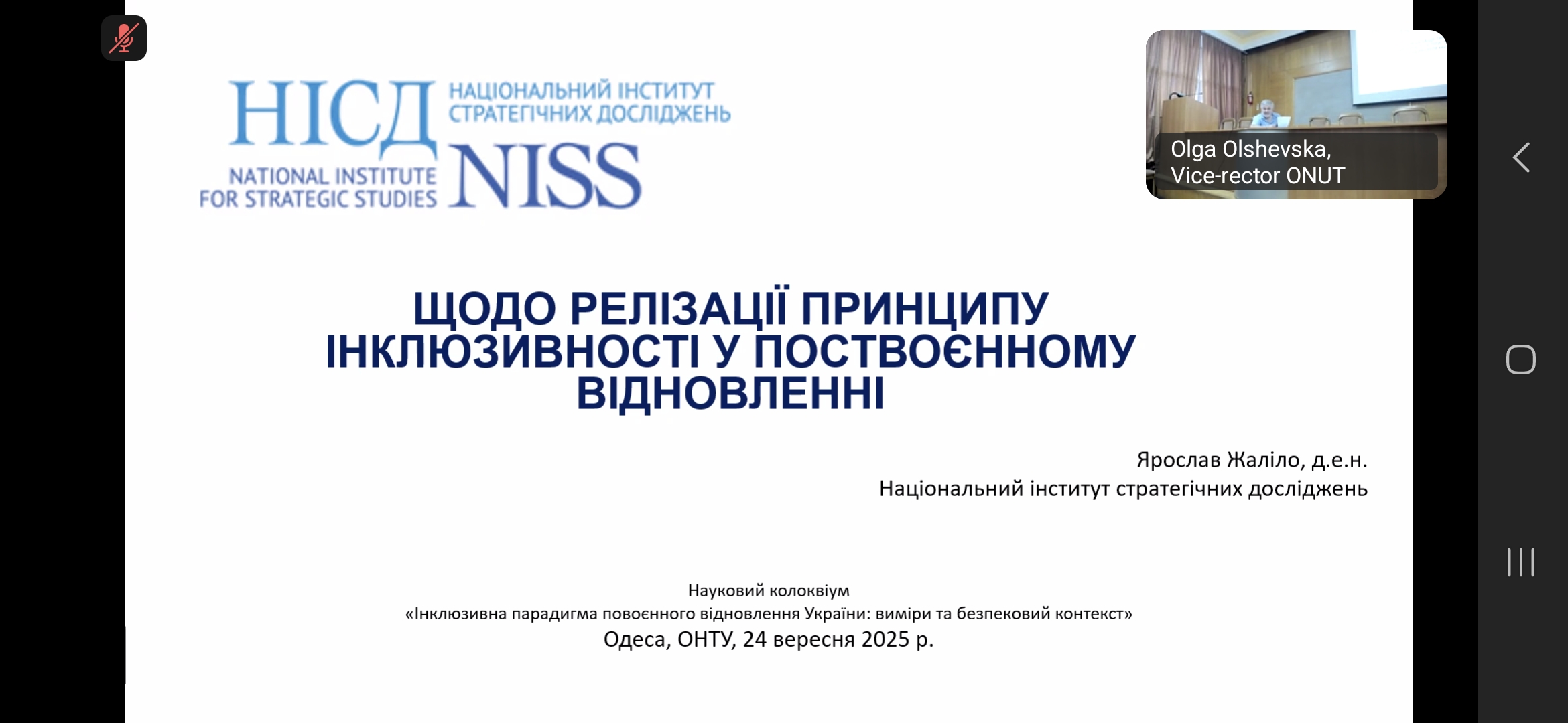 1. Про підсумки наукового колоквіуму на тему «Інклюзивна парадигма повоєнного відновлення України: виміри та безпековий контекст»