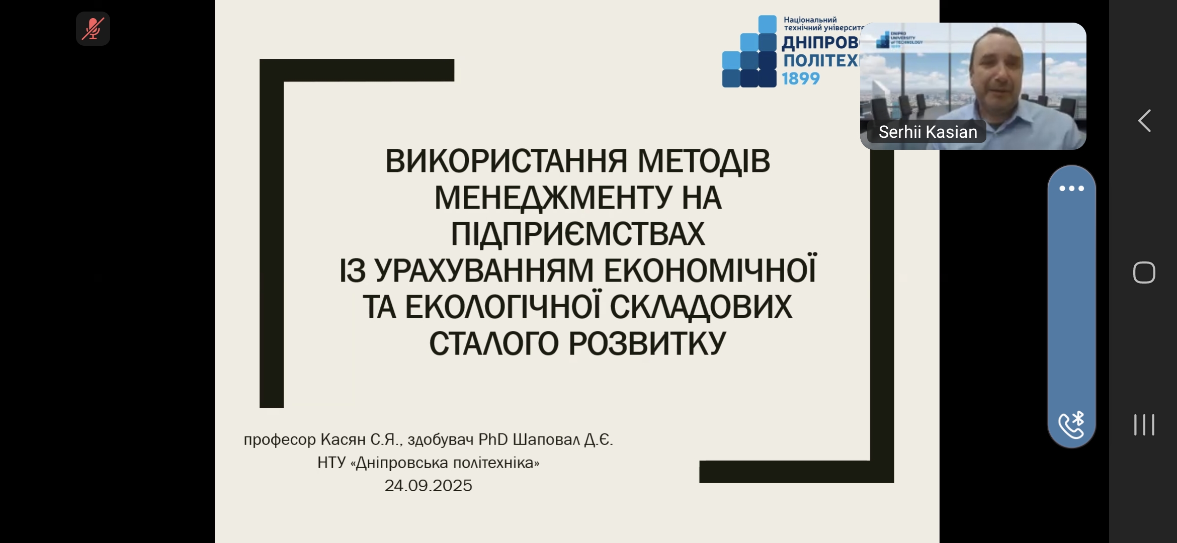 • Сергій Касян, кандидат економічних наук, доцент, професор кафедри маркетингу НТУ «Дніпровська політехніка», за темою «Використання методів менеджменту на підприємствах із урахуванням економічної та екологічної складових сталого розвитку».