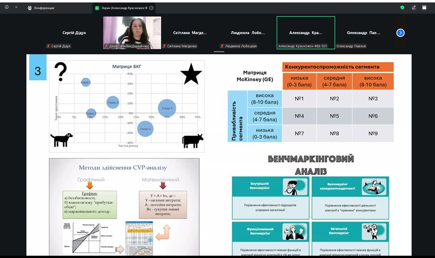Науковий захід об’єднав здобувачів різних рівнів вищої освіти, які представили результати власних досліджень з актуальних проблем розвитку національної економіки, забезпечення економічної безпеки підприємств, інвестиційної діяльності, стратегічного управління та трансформаційних процесів в умовах сучасних викликів.